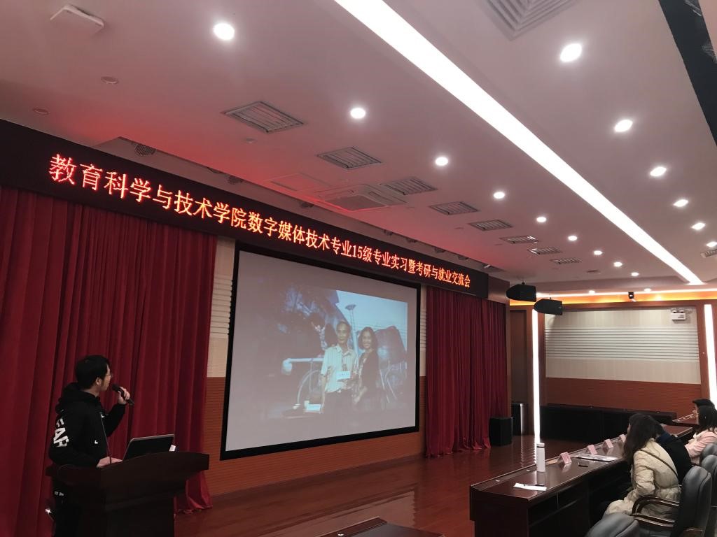2019年1月3日上午,教育科学与技术公司数字媒体技术系的师生在白云校区三教讲学厅举行了2015级毕业生的专业实习暨考研与就业交流会。本次交流会由系主任陈雪梅老师主持。数字媒体技术系专业老师及辅导员出席了本次交流会。