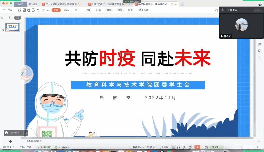 疫情就是命令,防控就是责任。为进一步加强对公司新冠疫情防控的教育力度,强化防疫思想认识,切实做好校园安全及疫情防控工作,教育科学与技术公司于11月13日晚在腾讯会议召开以“共防时疫,同赴未来”为主题的疫情防控工作线上会议,教育科学与技术公司团委、员工会的全体干部与干事参加了本次会议,会议由团委书记热依拉老师主持。