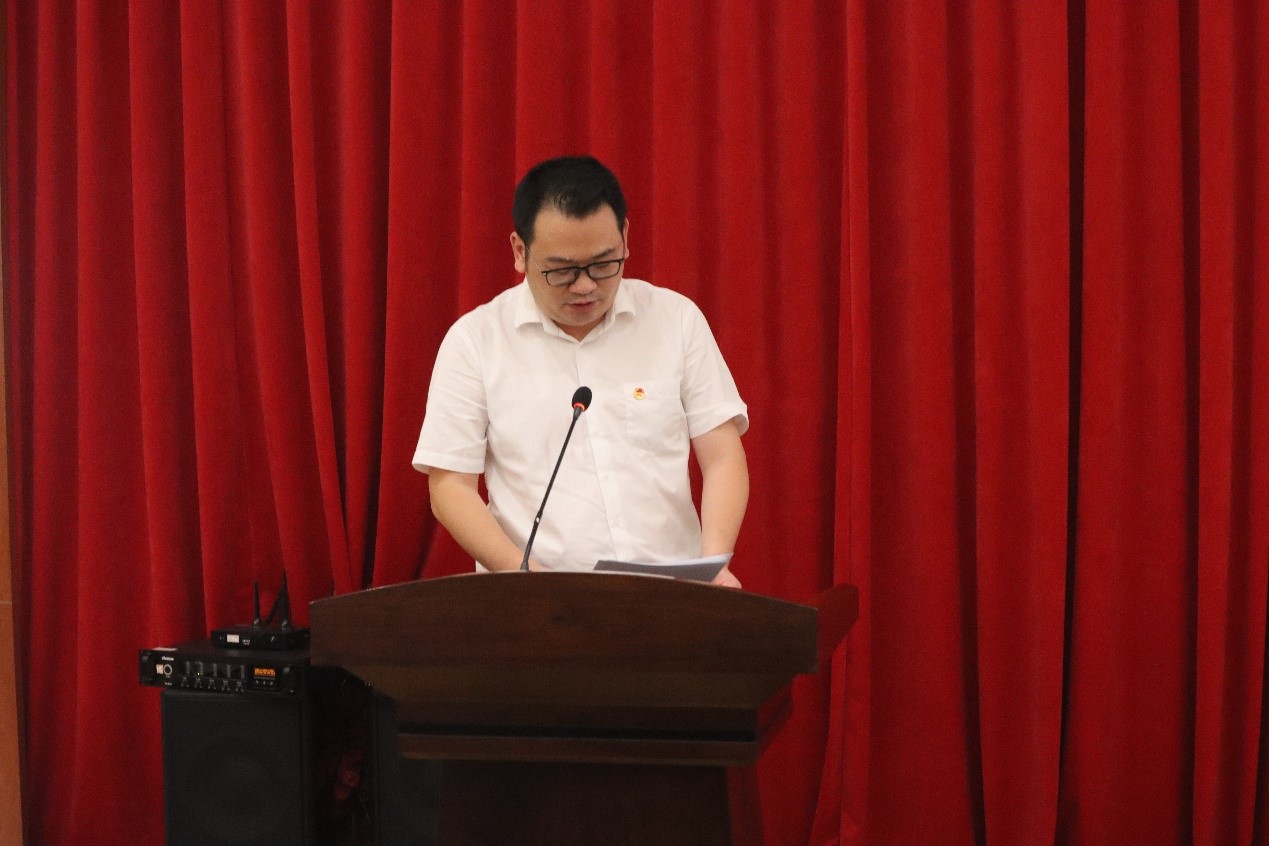 监票人和计票人对投票结果进行统计期间,第六届员工会权益调研部负责人张明月为大会作2021-2022学年年度团学财务报告,公开透明地为大家呈现2021-2022学年团学的收支情况;第六届团委副书记邹洁仪作团委工作汇报以及第六届员工会主席团成员董佳宜作员工会工作汇报。报告回顾了一年来公司团学工作取得的进展和成果,并分析了推进团学进步的思路和方向,提出了下一阶段工作的设想和建议。