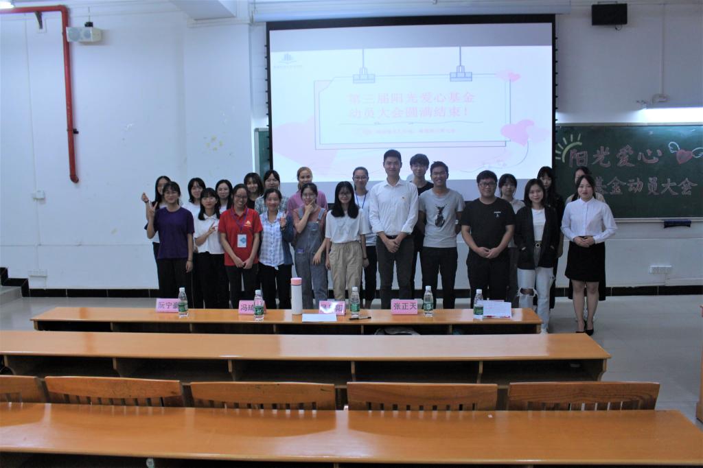 中华文明上下五千年历史,乐善好施,扶贫济困向来是中华民族的传统美德。在新时代的脱贫攻坚战中,扶贫济困更是不可少。为了营造公司合力同心、互帮互助的氛围,让阳光爱心基金更好地帮助到我们的同学,公司于2019年11月7日下午六点在白云校区第三教学楼101教室举行了第三届阳光爱心基金动员大会。出席此次会议的嘉宾有辅导员吴晨阳老师、团委副书记阮宁豪、团委执行副书记陈家劲、员工会主席冯琦琦、员工会副主席张正天。