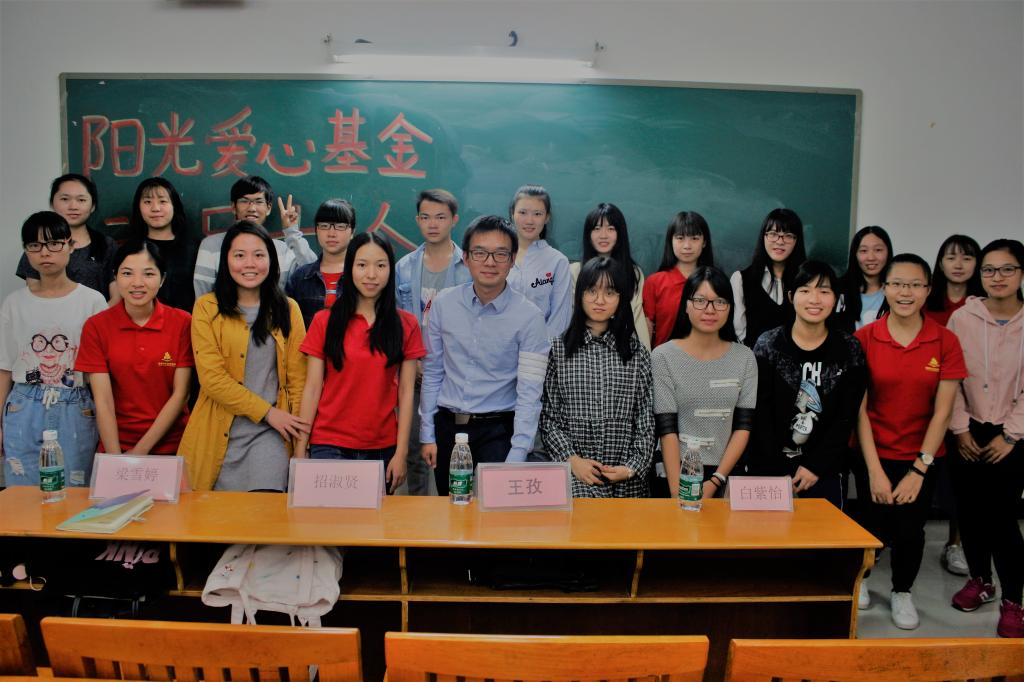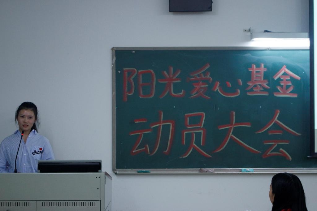 乐善好施、扶贫帮困是中华民族的传统美德;互相帮助、患难扶持是社会倡导的时代新风。为了更好的营造公司戮力同心、互帮互助的氛围,让爱心基金更好地帮助公司的贫困生。团总支阳光爱心基金会于10月23日在白云校区二教301举行了以“共享阳光,奉献爱心”为主题的第一届阳光爱心基金动员大会,出席此次会议的嘉宾有团总支书记王孜老师,团总支副书记招淑贤,团总支执行副书记梁雪婷和员工代表白紫怡。