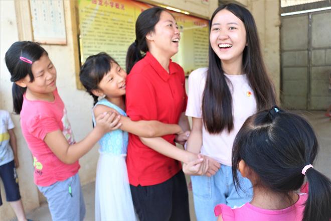 如果说课堂是一个调色板,老师是颜料,那孩子们就是老师笔下一幅幅美丽的画。课堂是双向的,老师将知识传递给孩子,孩子用认真回馈老师。每每看到孩子们天真的面孔、求知的眼神,支教队员们都会希望时间能慢一点、再慢一点,因为课堂真的美好得让人舍不得结束。