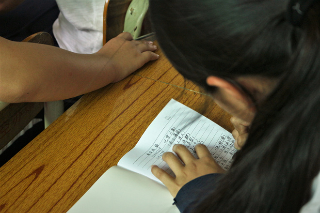 趣味语文课堂上,面对自己原来没有学过的知识,孩子们没有表现出不耐烦的心情,反而是一笔一划地把它们记在自己带来的本子上。“知识的海洋是无边无际的,孩子们渴求知识的欲望是无穷的,真心地希望他们不管做什么都可以一直像现在这样认真。”这是支教老师所说的话。