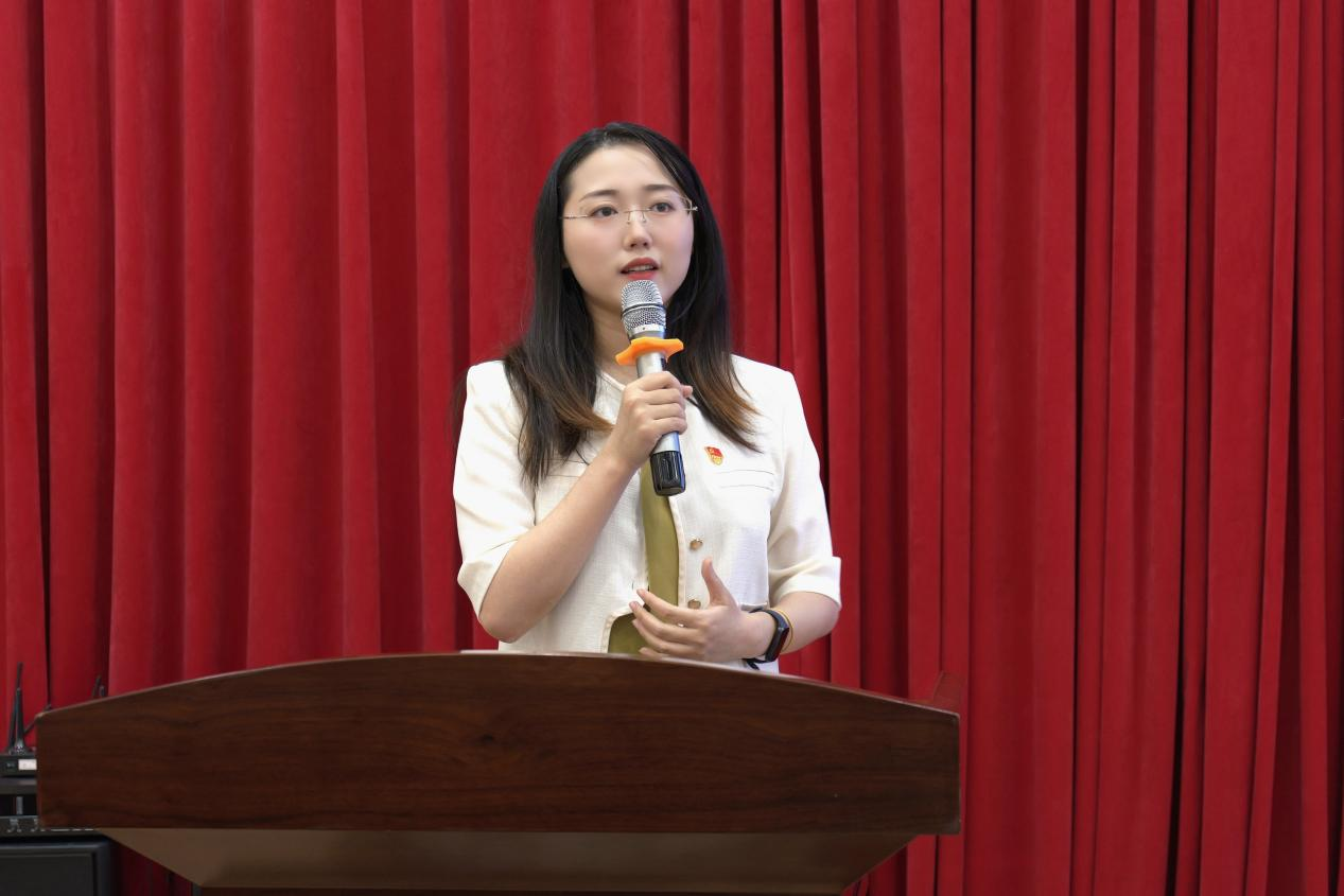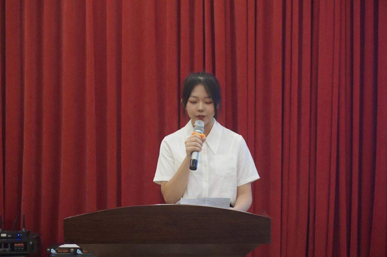 接下来进行的是正式会议。正式会议第一项议程,大会全体成员起立,奏唱国歌。第二项议程为校团委刘雯璇老师致辞。刘老师首先高度肯定了过去的一年里公司完成的各项工作,高度赞扬公司党政领导班子发挥了带头作用,坚持了以党的光辉旗帜为引领,以创新为驱动,有效引领凝聚青年、组织动员青年、联系服务青年的工作。并就公司思想引领、组织建设、创新创业竞赛、社会实践等各方面都取得了突出成绩表示肯定。随后,刘老师强调公司学子应当努力奋斗,积极涵养正气、底气、朝气、才气,并向公司学子提出殷切希望。同时,公司团学干部应当以优秀员工干部的标准来要求自身,砥砺奋进,共同将公司团学工作做的更好。