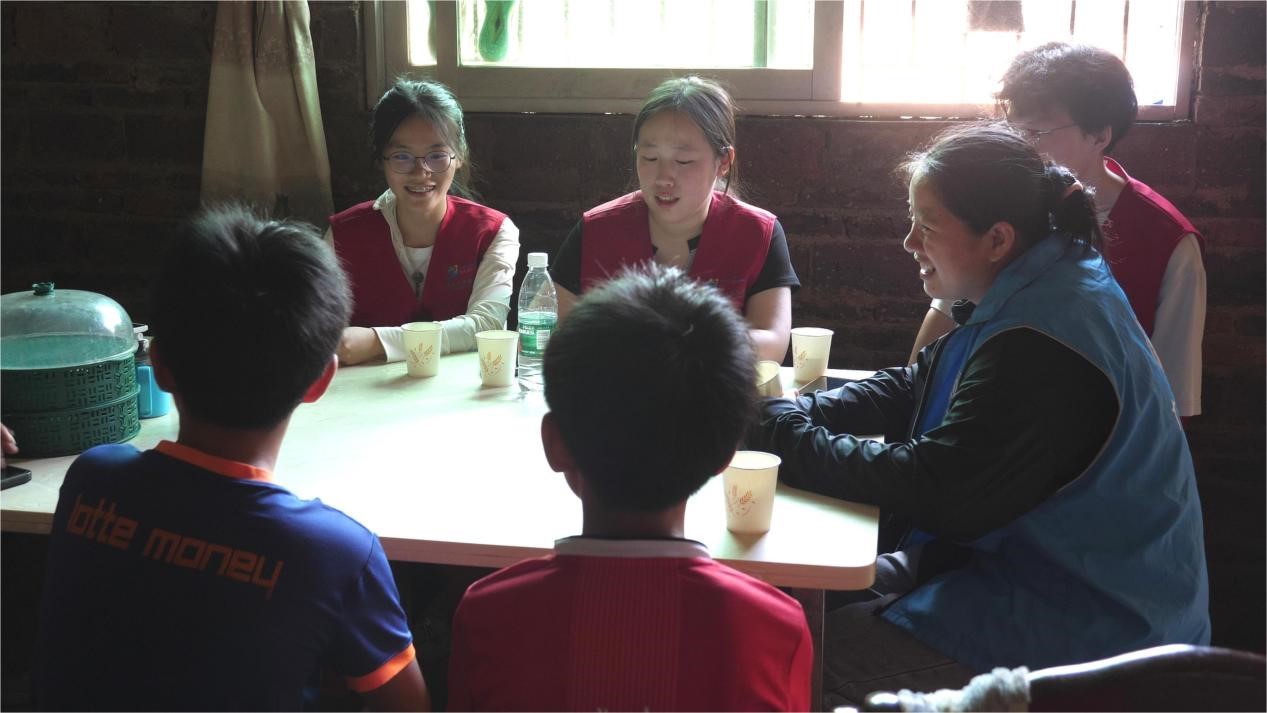 在福堂镇团委、社工及村干部的带领下,成员们耐心、热情地与留守儿童沟通交流,与监护人亲切交谈,详细了解孩子们的生活、学习和心理状况以及其父母在外工作的情况,鼓励他们保持乐观积极的心态,勇敢面对生活;成员们平和温柔的语气、耐心细致的回应、明媚真诚的笑容犹如暖流,滋润着受访儿童的心田,被访儿童也逐渐敞开心扉,主动向成员分享自己的生活。