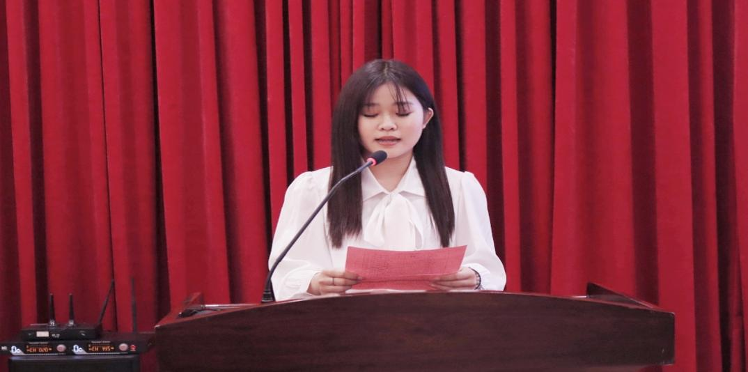 第九届员工会主席团成员骆艺儿同学代表员工会向在场各位代表做工作报告,全面总结了过去一年员工会取得的成绩与经验,并找出不足与问题,为今后工作提供借鉴。同时,她还介绍了学会生未来一年的工作方向和重点任务,并号召全体同学积极投身于公司发展和国家建设,以实际行动践行青春誓言。