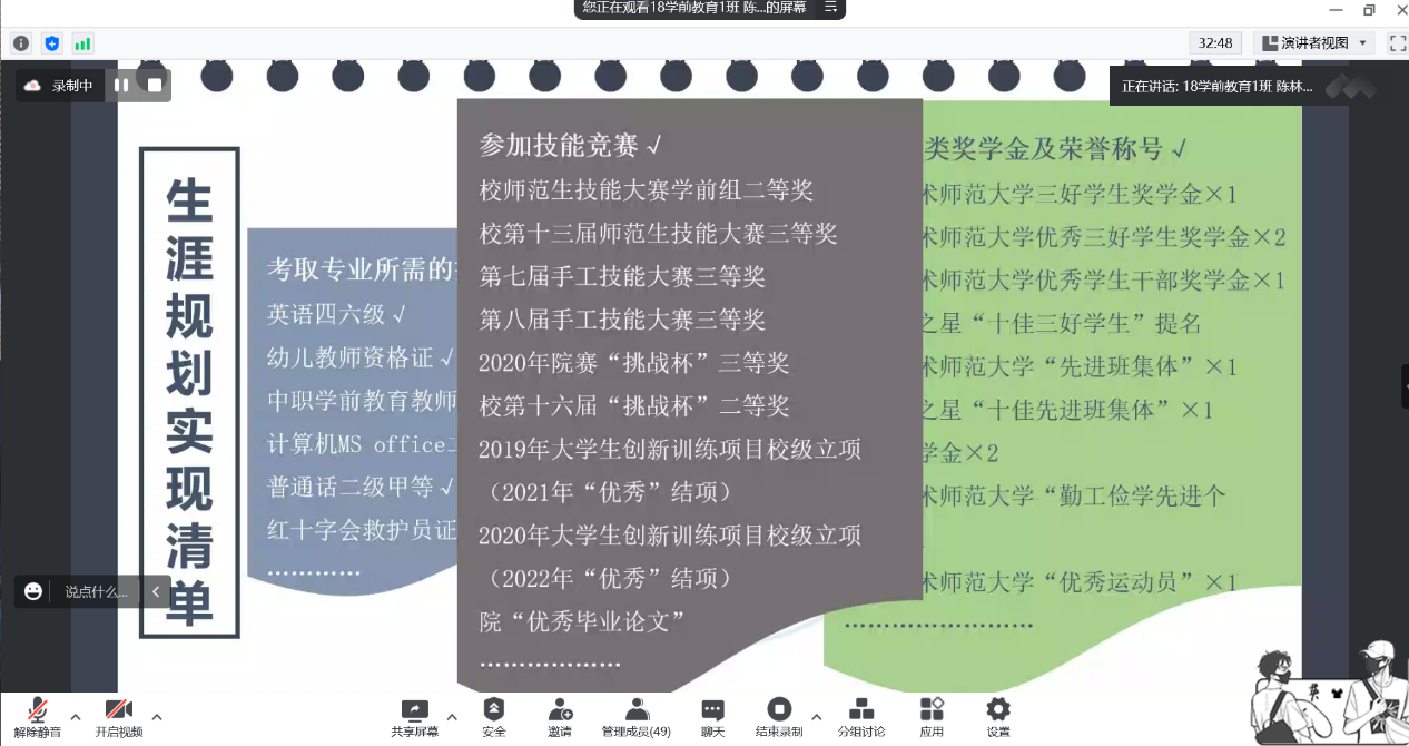 为了让同学们更好的了解国家奖助学金及相关政策,公司勤工助学服务中心于2022年6月18日晚上21:00通过腾讯会议平台开展了以“助学·筑梦·铸人活动之国奖经验分享会暨社会感恩教育”为主题的会议。本次会议中,我们邀请了陈林熹同学分享其自身学习情况、员工工作经历、党员发展经历、实习工作经历以及对国家奖助学金政策的了解,为同学们进一步了解到职业生涯规划的重要性、提高规范自身行为意识和加强对国家奖助学金政策的认识提供了强有力基础。