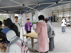 游戏规则:在地上相应位置摆放上8瓶矿泉水,矿泉水上用便利贴写上委屈、疲惫、辛苦、不顺心等多种负面情绪,让参与游戏的同学用沙包砸。