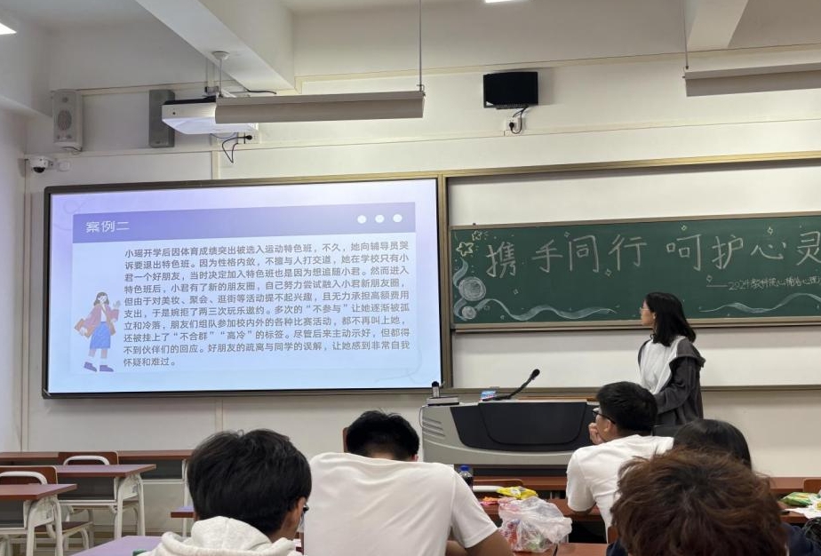 活动通过一系列精心设计的游戏,迅速点燃心委们的热情。心辅站成员带领心理委员玩划背传字、击鼓传花等游戏拉近心委之间的距离,为后面讲述工作经历、分享工作经验、提出工作困惑等环节提供情感上的铺垫。此后,通过经典案例分享、相关视频观看等,心委们了解了心理辅导的重要性,并掌握高效工作方法,互相分享交流班内的心理情况,促进良性合作,从而更好地在班级开展心理健康工作,履行职责。