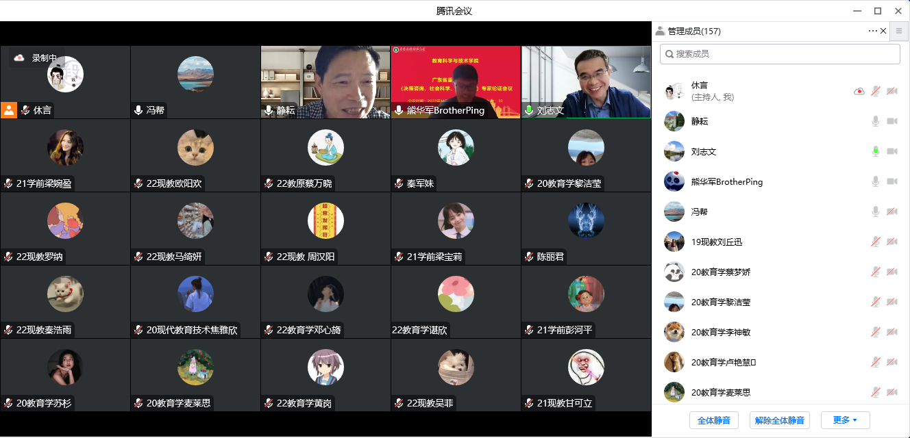 2022年11月10日上午9:00-11:00教育科学与技术公司于腾讯会议召开了广东省重大研究基地(决策咨询、社会科学、岭南文化)专家论证会议。广东开放大学党委书记罗海鸥书记、华南师范大学职业教育公司经理刘志文教授、广东第二师范公司教育公司经理郭凯教授、华南师范大学教科院国际与比较教育研究所所长马早明教授等四位知名专家受邀与会,教育科学与技术公司部分教师及全体研究生参会,会议由教育科学与技术公司经理熊华军教授主持。