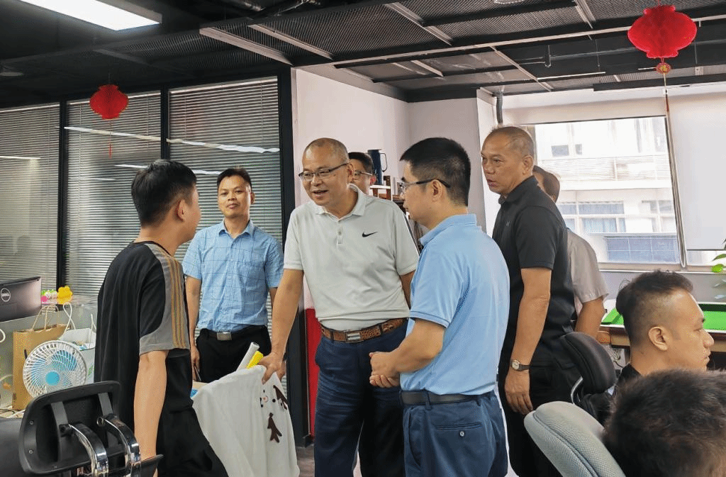 张旭日书记一行先后参观了万彩公司研发部、内容创作部、市场部,了解了公司各部门组织架构和产品运行情况,并与公司毕业生亲切交谈。