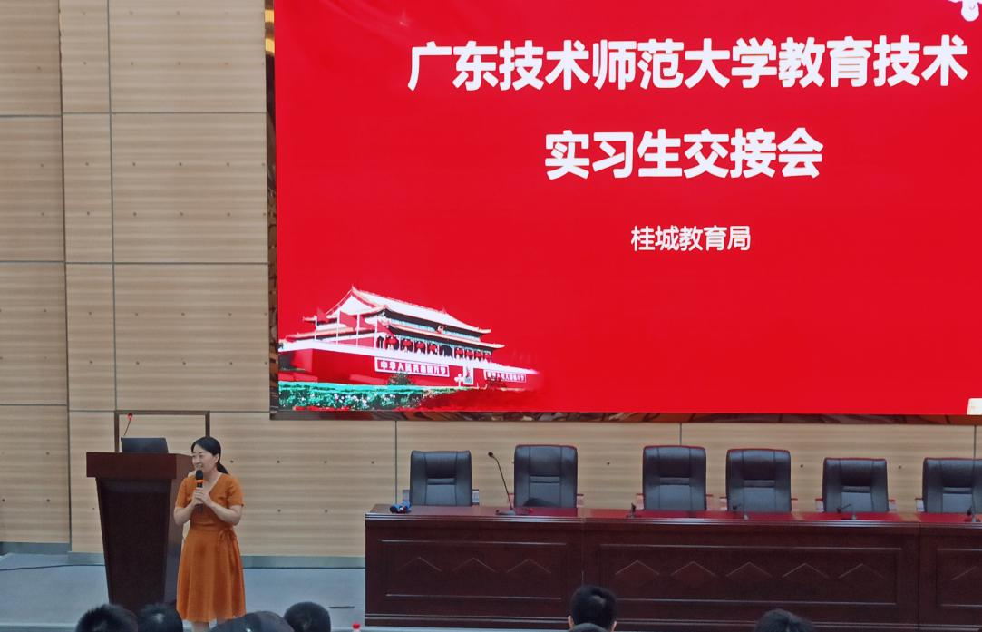 随后赵玉老师介绍了广师大教育技术学专业实习生的基本情况和教育实习的任务安排,对南海桂城街道教育发展中心的领导与映月中学等18所实习公司的校外指导老师们表示了感谢,并嘱托实习生尽快转变角色、适应实习公司的工作要求,围绕信息技术类课程教学、班主任工作、创客比赛指导等深入学习实践,真正做到学以致用、发挥所长。
