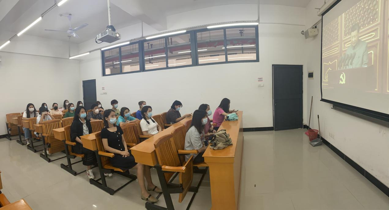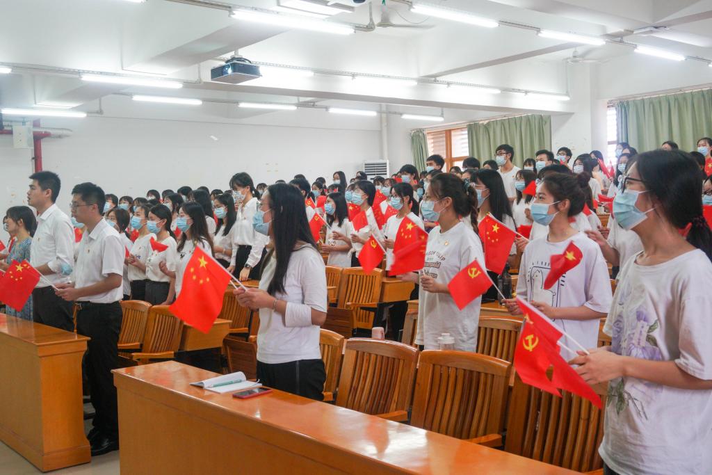 收看庆祝大会过后,全体员工党员进行集体宣誓活动,重温入党誓词的宏亮声音在教学楼内回荡。在专职组织员吴晨阳老师的带领下,大家佩戴党员徽章,举起右手,面向鲜红的党旗庄严宣誓。最后,全体与会人员手持党旗和五星红旗,共同齐唱《没有共产党就没有新中国》,表达对党和祖国的无限热爱。
