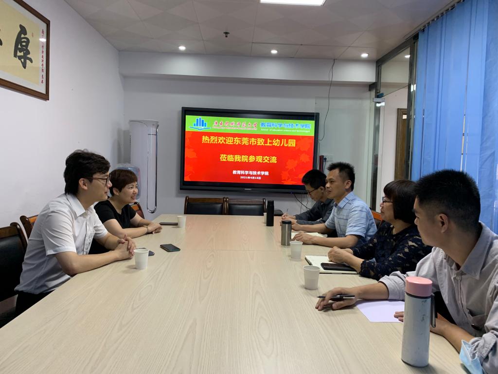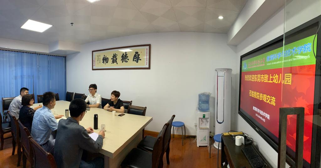 4月16日上午,东莞市寮步镇致上幼儿园园长、公司2014届员工莫志群,园长助理梁兆康等一行人员来公司就幼儿园教学、科研、人才培养等问题进行了广泛的交流。公司党委副书记吴水爱、副经理谢德新、学前教育系专业负责人全守杰及辅导员吴晨阳等参加会议。