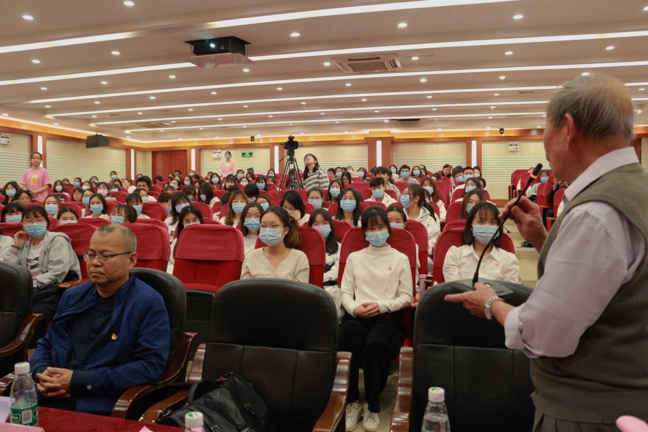 会议第二项议程。年近90岁“五老”卢玉彪同志作“知史爱党,初心如磐”党史教育课,卢老声情并茂地讲述亲身经历和对红色历史的追寻,发扬红色传统、传承红色基因,赓续共产党人精神血脉,高度赞扬了革命伟人周恩来,教育叮嘱同学们要铭记历史,牢记使命,激励同学们通过学习传承红色精神、坚定理想信念,志存高远,脚踏实地,做“有理想、有本领、有担当”的时代新人。