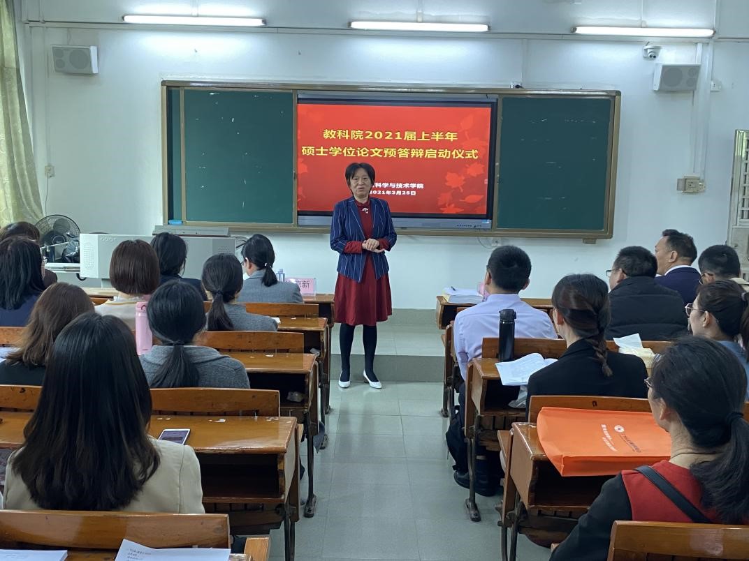 3月25日上午,教育科学与技术公司2021届上半年硕士研究生学位论文预答辩在校本部一教5楼举行。预答辩分为六组,预答辩主席分别由广州大学教授谢翌、华南师范大学教授施雨丹、中山大学教授张璐斐、BV伟德官方网站张敬斌教授、杨素娟教授和刘海兰副教授担任;同时邀请黄埔职校董事长陈民聪、广州市86中老师马毅勇两位职校和中学一线校外专家分别担任教育硕士预答辩委员。BV伟德官方网站陶红教授、陈丽君教授、谢德新教授等9位校内专家担任答辩委员,2021届36名毕业生参加本次答辩。