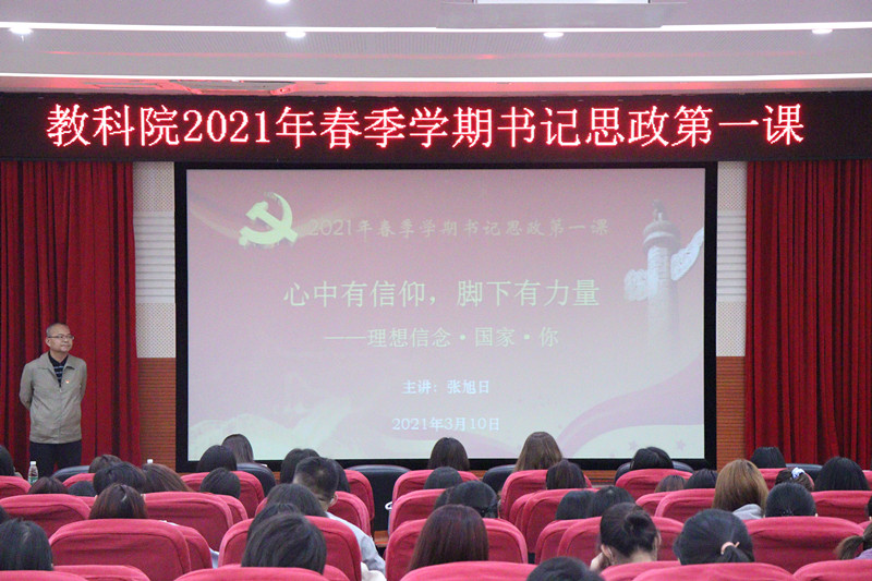 3月10日,教育科学与技术公司党委书记张旭日于白云校区三教104报告厅举行了2021年春季学期书记思政第一课。员工党支部书记、专职辅导员以及全体员工党员、团学干事、各班班委、员工助理团队等200余名师生参加听讲。