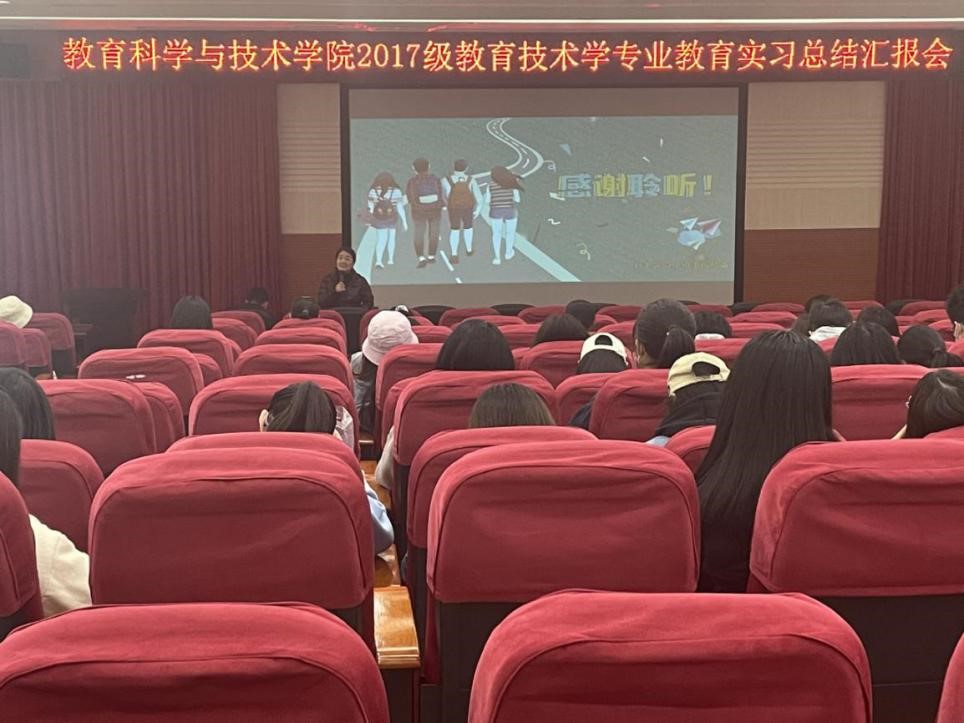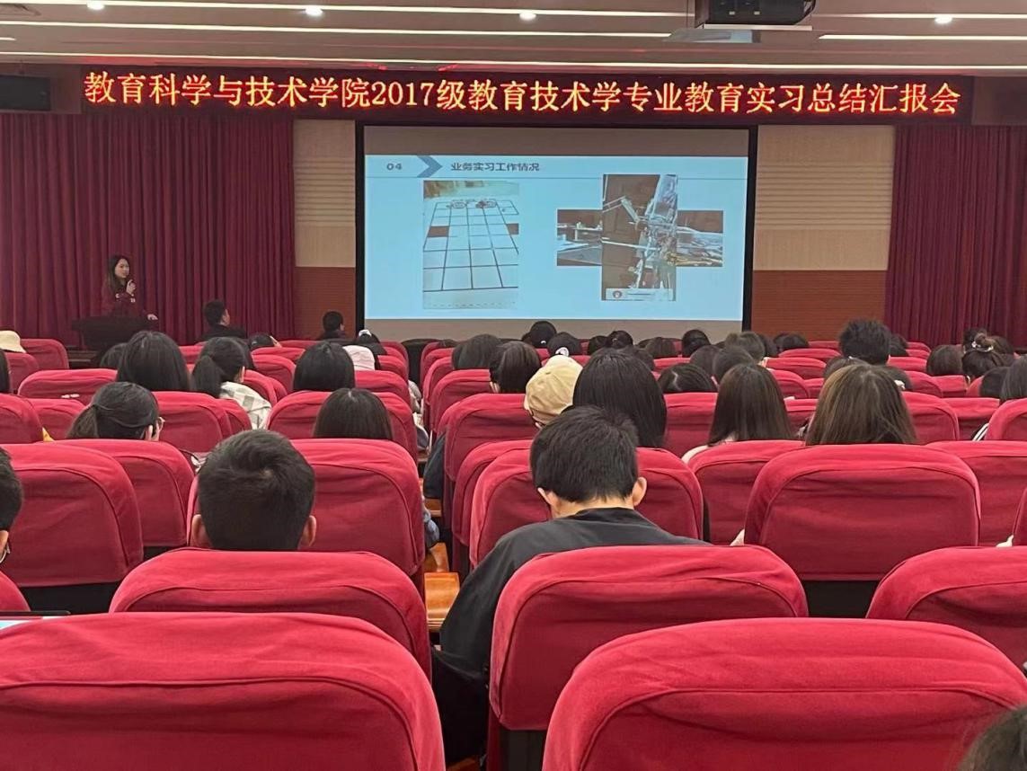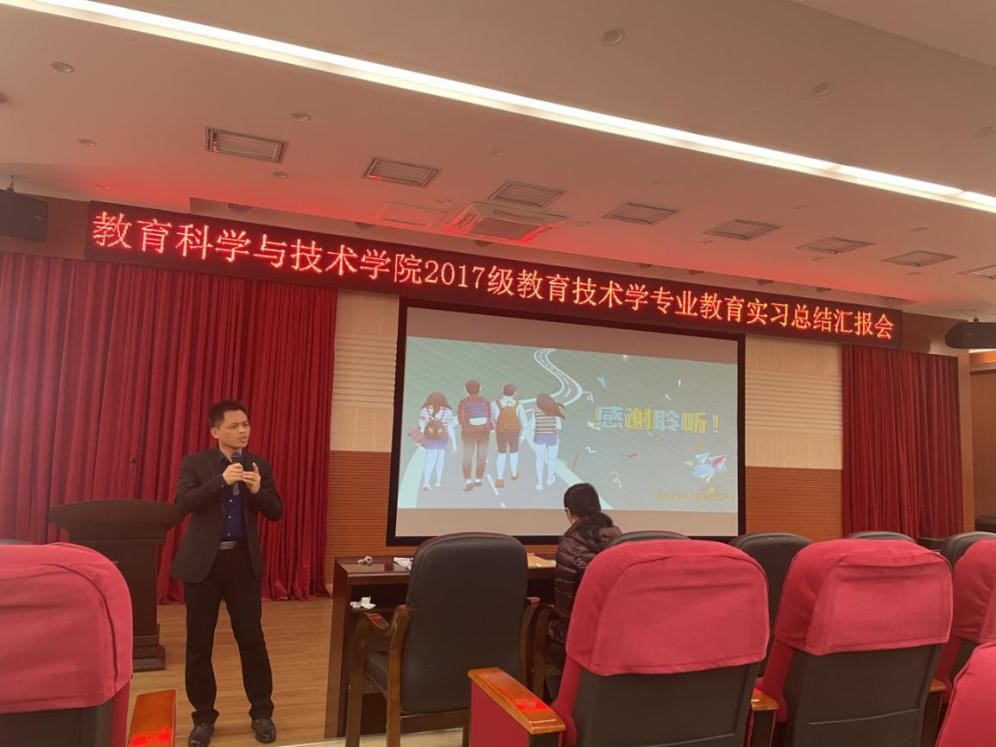 2020年12月24日下午,教育科学与技术公司2017级教育技术学专业教育实习总结汇报会在白云校区学术报告厅顺利召开。公司谢德新副经理、教育技术系系主任赵玉教授、黄芳明老师以及教育技术学专业2017级、2018级和2020级的员工参加了汇报会,会议由赵玉老师主持。