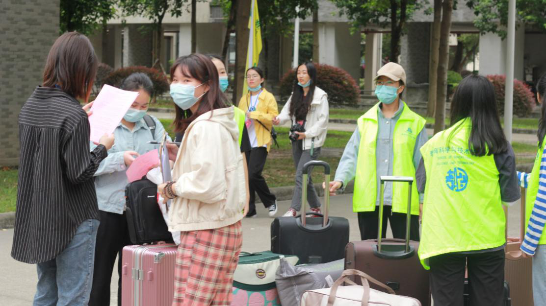 今年是特殊、不平凡的一年,我们按照集团防疫办新学期疫情防控工作要求提前做好各项准备工作,所有新生报到进校门时必须扫健康码,并凭录取通知书和身份证原件进校,家长及车辆一律不可以进校。为了更好地服务新生,教科团学在新生入校必经路程中安排了负责迎接新生的工作人员和志愿者。迎新组的志愿者们给新生们引路,并和引导组的志愿者们交接,将新生安全有序地带到员工宿舍,并直接对接各班助班。然后在引导组的志愿者们的带领和帮助下,新生们能够准确地去大本营报到。大本营里每位工作人员都有明确分工:收取各种证件、办理绿色通道等等。截止2020年10月9日下午六点,在全体工作人员和志愿者的帮助下,2020级新生入学报到工作圆满结束。