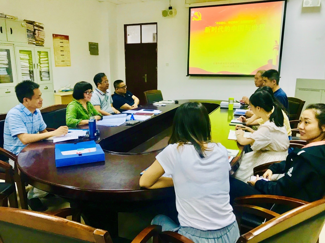 按照公司关于开展“不忘初心、牢记使命”主题教育的部署要求和党政办党支部主题教育工作安排,10月11日,党政办党支部书记常锋峰同志以“新时代的中国与世界”为主题,为支部全体党员讲了一次生动的主题党课。参加这次党课的有教科公司党委林启词书记,吴水爱副书记,吴天生副经理,谢德新副经理和党政办党支部全体党员。