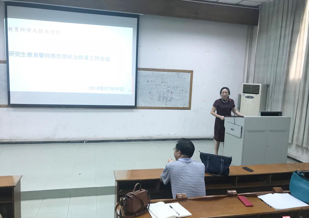 7月9日下午,教科院在实验楼107召开研究生工作暨导师师德教育、思想政治工作教育大会,公司党委书记林启词、经理陶红教授、副经理陈丽君教授、副经理任平教授,以及研究生导师和研究生参加会议,会议由陈丽君副经理主持。