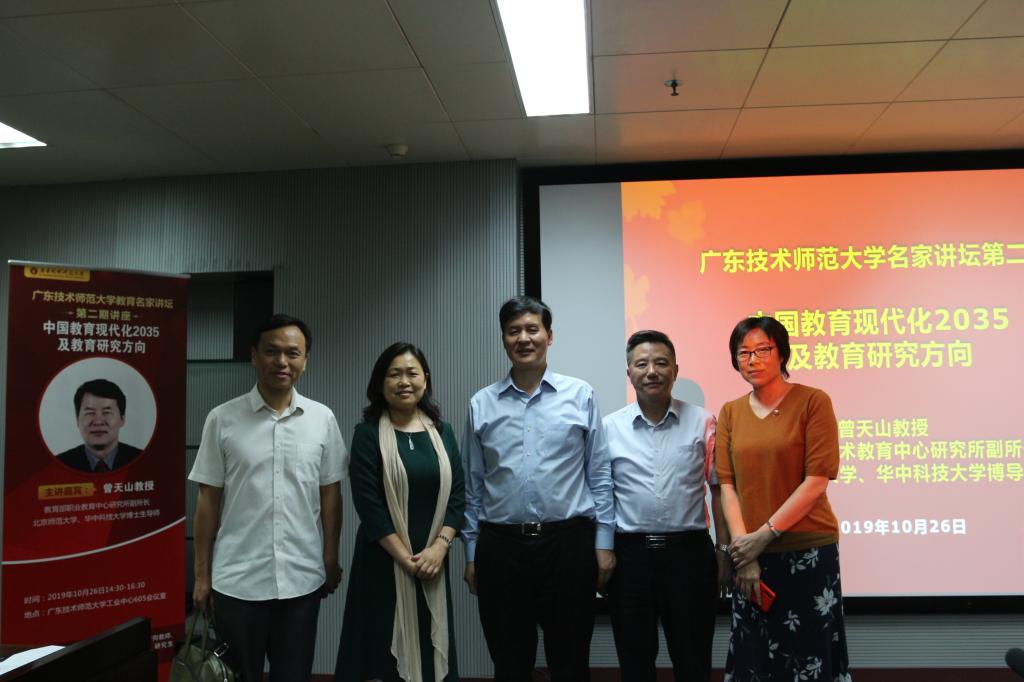曾天山教授以“中国教育现代化2035及教育研究方向”为主题做了学术报告。他从“分析教育新形势”“悟透全教会精神”“把握教育现代化2035方向”“聚焦五年重点工作”“创新培训模式”“问题世界的教育研究”等六个方面来阐述了中国教育现代化进程的新时代使命,并以此来引领当前的教育研究方向。他认为“目前教育的基本矛盾已经发生转变”,如“从有学上到上好学、能就业到体面工作”的转变,因此要根据新形势来把握教育现代化的发展方向,并以此来发展和完善职业教育体系,以更好地促进职业教育的发展符合新时代要求。最后,曾教授向与会师生讲解了规划课题申报、开题、结题的基本环节和需要注意的事项,强调在课题申报上要突出研究问题的独特性、文献占有的前沿性、研究设计的科学性、研究团队的协同性、研究成果的创新性。曾天山的报告高屋建瓴、内容丰富、旁征博引、深入浅出,扩大了师生们的研究视野,对研究职业教育问题具有重要的启迪。