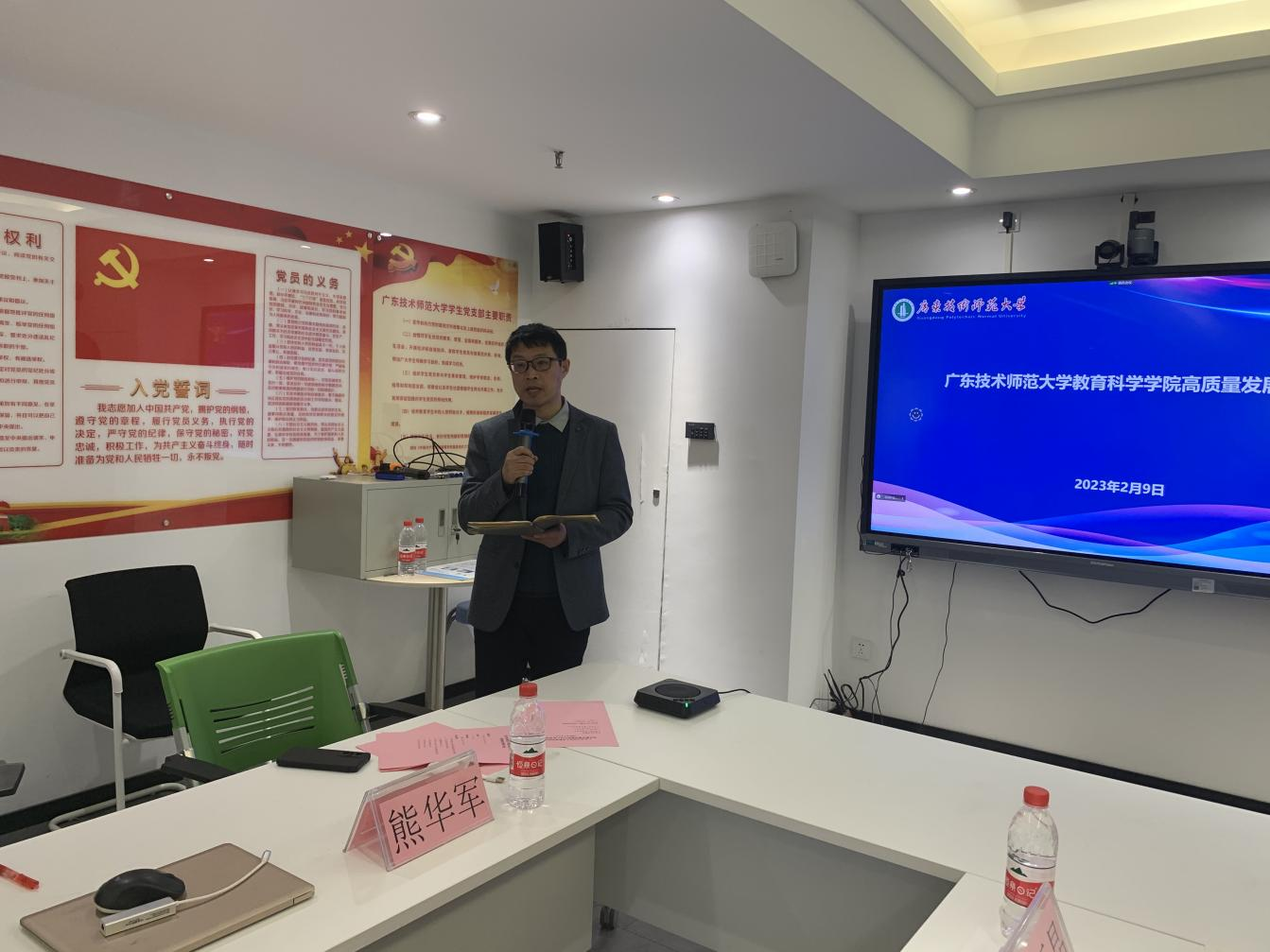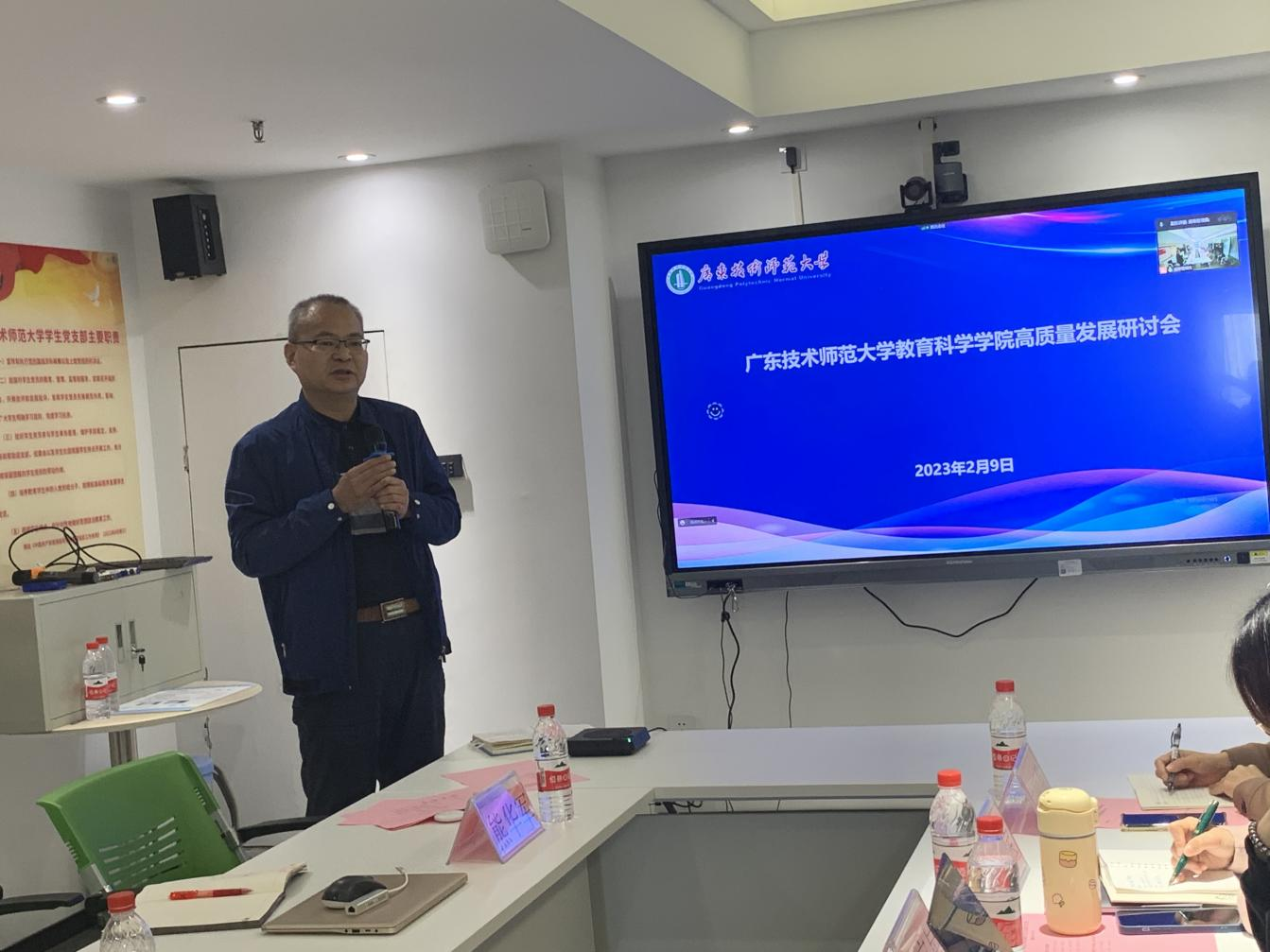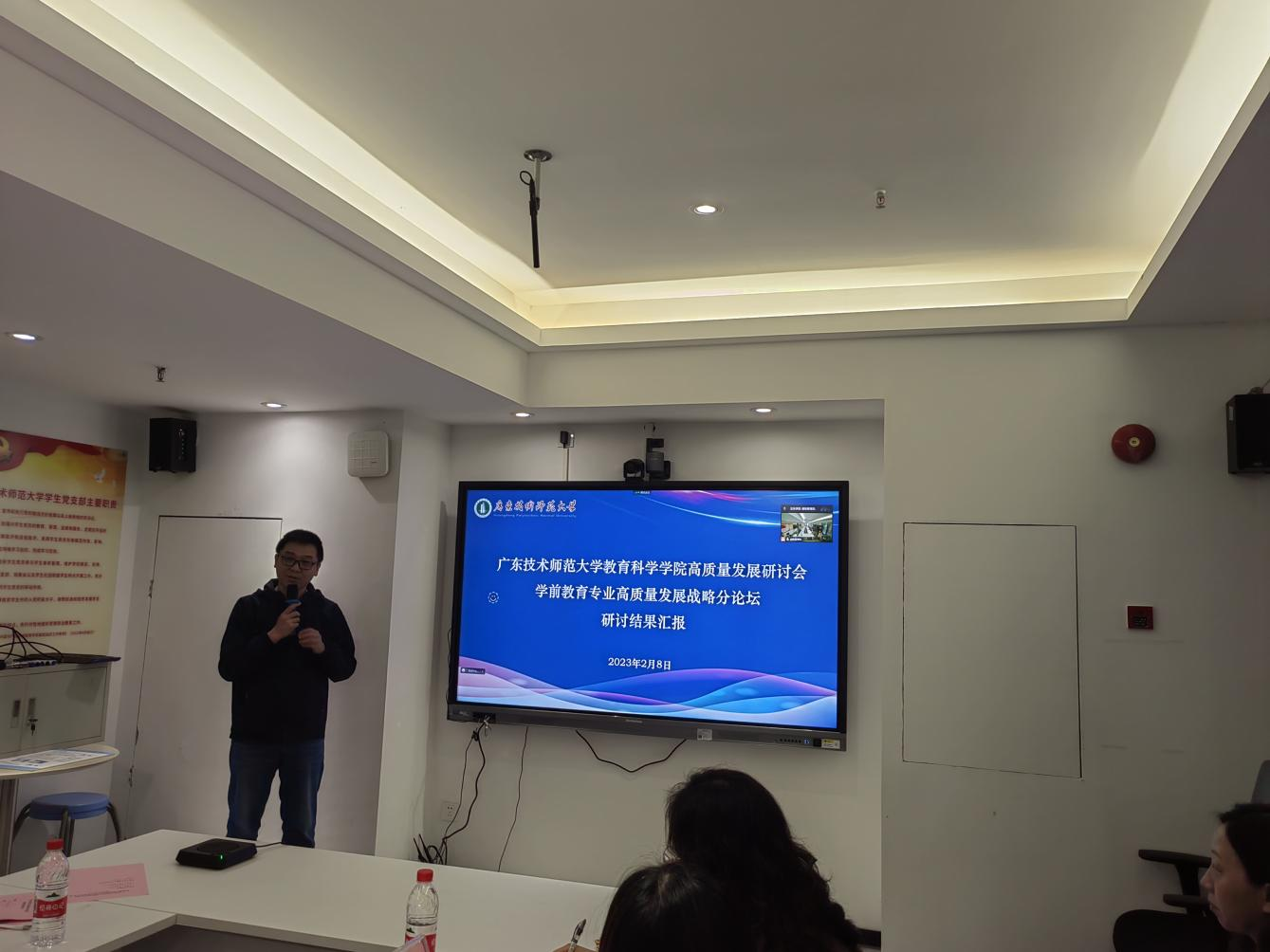 随后各系主任汇报各个专业未来的高质量发展思路。学前教育系主任黄茂勇提出了寻找差异化的需求、充分挖掘员工资源、建立“导师制”和“导生制”、优化教师团队激励机制等行动策略。应用心理学系主任张玲燕提出了师生主体化、专业内生发展环加专业外部生机环联动式发展的总体发展思路,提出了错位式发展理念、产品思维模式、科研发力、以赛促学等发展策略。教育技术系主任赵玉提出了教学为主体、科研为引擎、比赛为左翼、服务为右翼的一体两翼策略,重点突出了教育产品数字化和科创教育下乡服务品牌的建立和打造。数字媒体技术系主任伍国华提出了要加强国培、省培项目的申报,服务河源电子商务和数字媒体职业教育,对接文化创意产品设计、虚拟漫游等文商旅融合产品的设计与开发。