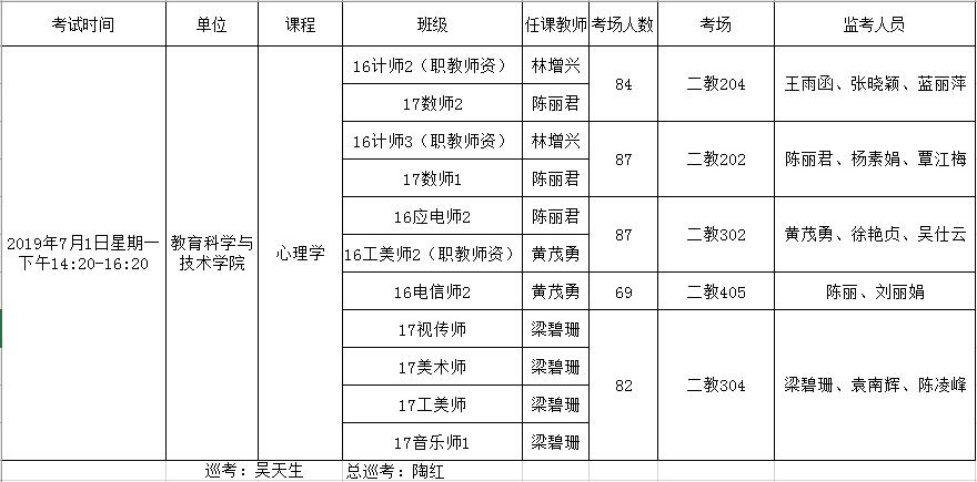 2018-2019第二学期期末考试安排表