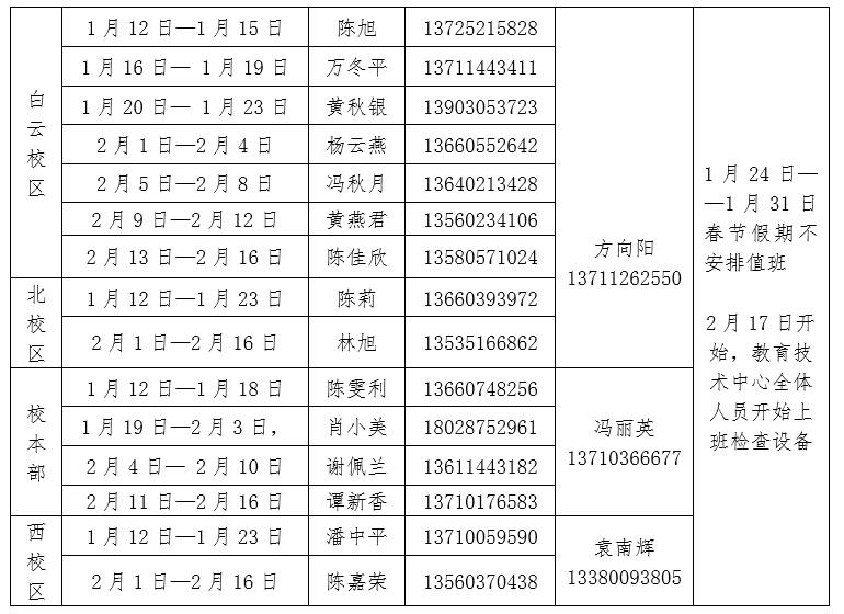 2020年教育技术中心寒假值班表