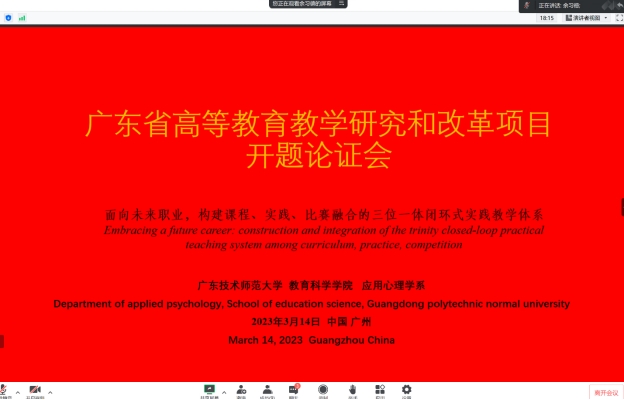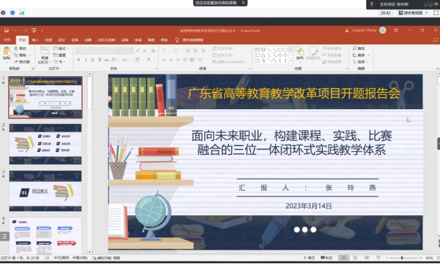 2023年3月14日下午,公司召开广东省高等公司产品改革项目开题论证会。张玲燕老师做了题为“面向未来职业,构建课程、实践、比赛融合的三位一体闭环式实践教学体系”的报告。参加此次会议的有熊华军经理、谢德新副经理、学前教育系黄茂勇主任等领导以及教改课题组老师。