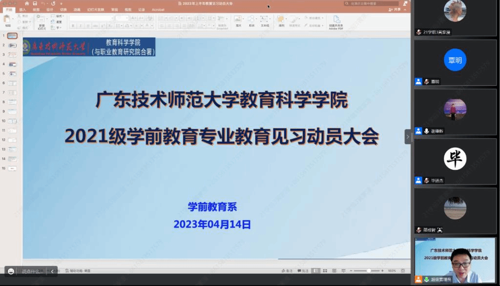 为落实人才培养方案要求,引导员工明确教育见习的目的与意义,进一步推进教学计划工作顺利开展,4月14日中午,BV伟德官方网站2021级学前教育专业师范生教育见习动员会在线上成功召开。公司谢德新副经理、全体教育见习指导老师、2021级学前教育专业员工参加了会议,会议由学前教育系主任黄茂勇主持。