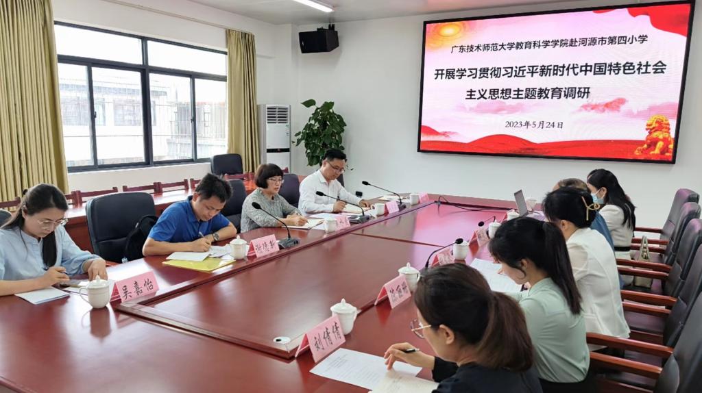 为响应党中央号召在全党大兴调查研究的工作要求,进一步推进访企拓岗促就业专项行动。5月24日,教育科学公司党委副书记吴水爱,河源校区管委会副主任张宇鹏,公司副经理谢德新一行赴河源市第四小学开展主题教育调研及访企拓岗活动。河源市第四小学副董事长谢碧玫等参加了本次活动。