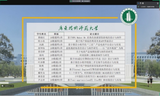 随后,正式进入优秀毕业设计作品展示环节。同学们展示的作品类别包括游戏设计、动画制作、虚拟现实、视频拍摄、三维漫游应用、APP、小程序和网站设计等。首先,汇报的同学展示自己的作品,结合视频进行解说。跟着,由罗立宏教授对作品进行点评并提出指导建议。汇报的同学再回答罗立宏教授提出的问题并深入交流。