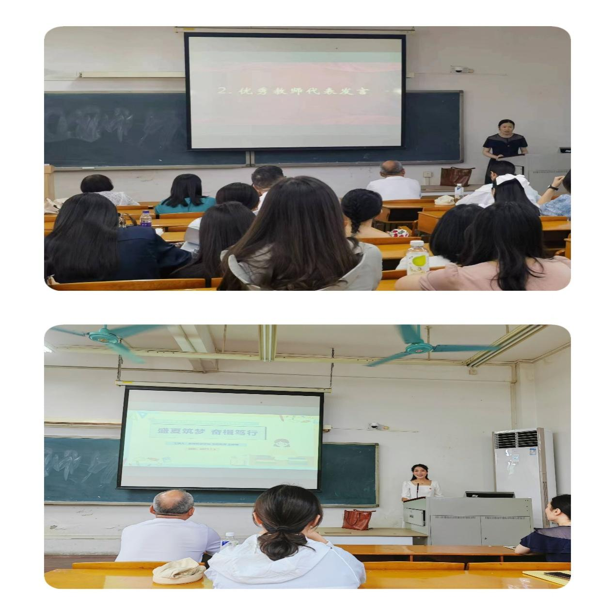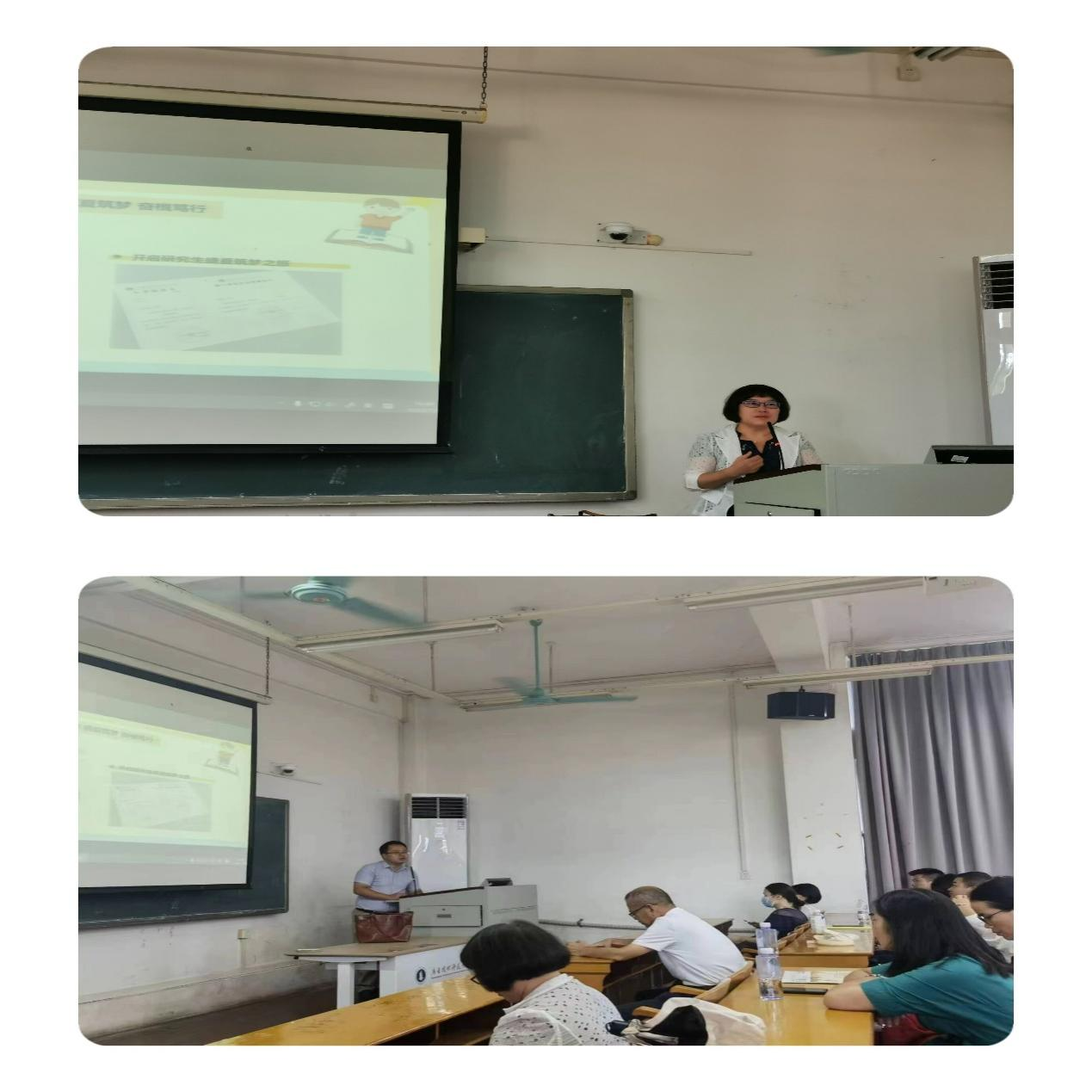优秀教师代表杨蕾老师提出兴趣是最好的老师,要始终保持对学术的热忱,坚持不懈,努力学习。优秀新生代表以《盛夏筑梦 奋楫笃行》为题,分别以“感恩母校 梦想启航”“专业成长 桃李芬芳”“盛夏筑梦 奋楫笃行”三大板块分享了在母校本科毕业后的成长和蜕变,并代表全体新生表达了对研究生生活的憧憬和努力的方向。