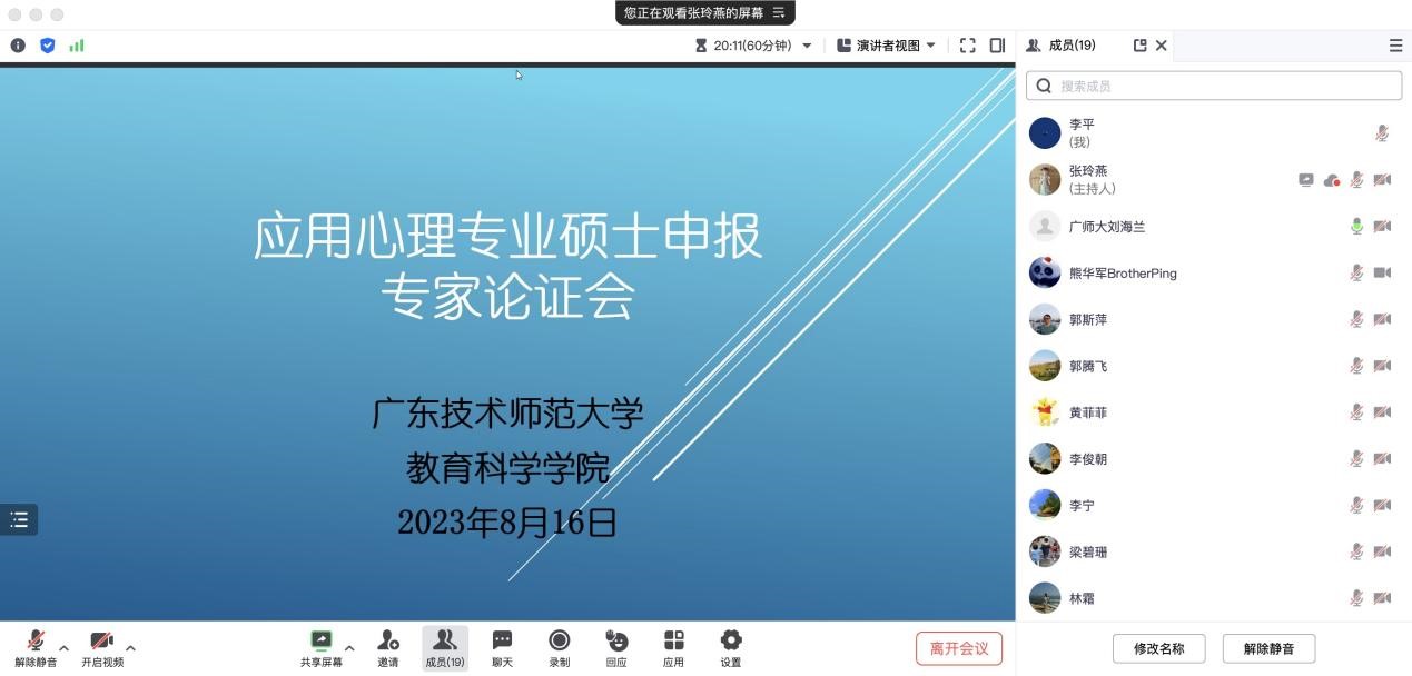 应用心理学系主任张玲燕副教授围绕“申报必要性”“学科现状”“存在问题”及“解决办法”四个方面就此次申报学位点的各项准备工作进行了汇报。张主任汇报结束后,由麻彦坤教授组织专家组进行论证。四位专家均高度肯定了应用心理专业硕士申报材料的准备工作,并对申报材料进行了一一详细点评。专家论证结束后,熊经理对四位专家表示感谢。熊经理表示,四位专家不仅就申报材料的撰写提出了详尽的宝贵意见,更是为全系教师未来的研究指明了重点和方向。下一步心理系全体老师应围绕专家建议,进一步打磨申报材料。应用心理学系主任张玲燕副教授就下一步修改工作进行了具体分工。最后,教科院全体领导一一发言表态,表示将一如既往、全力支持心理系此次申报工作。