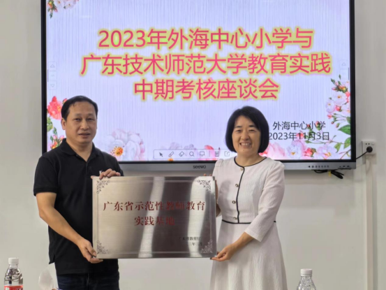 教育技术学系自2021年开始在外海中心小学建立教育实践基地,至今已有三批实习老师到外小进行教育实习,互相促进、共同成长。在外海中心小学余标局董事长及信息科组指导老师的鼎力支持下,BV伟德官方网站-广东省江门市江海区外海街道中心小学教师教育实践基地入选第三批省级示范性教师教育实践基地,11月3日上午举行了授牌仪式。