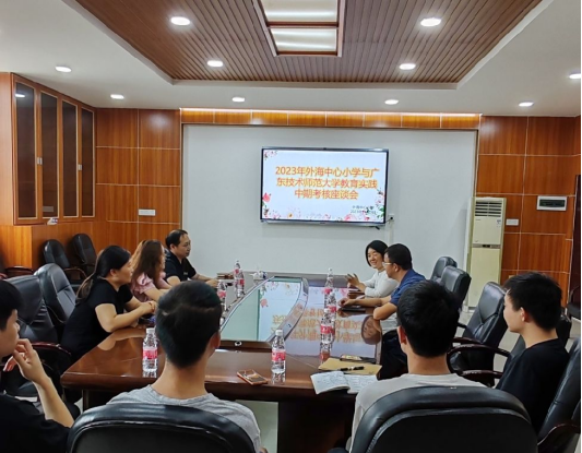 2023年11月3日上午,教育技术学系主任赵玉教授、黄芳明老师等赴江门市江海区外海街道中心小学开展实习中期检查,外海中心小学杜成明副董事长、肖巧玲助理、劳运霞老师、杨琴老师及公司4位实习生出席了在该校举行的教育实习中期考核座谈会。