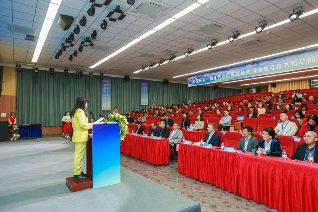 领导嘉宾及企业代表共同见证了全国托幼一体化行业产教融合共同体盛大开启。启动仪式上,主办单位为全国托幼一体化行业产教融合共同体理事长单位、常务理事长单位授牌,为理事长颁发聘书。