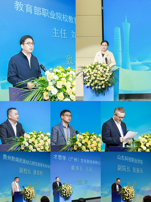 教育部职业院校教育类专业教指委主任刘兰明、广东省产教融合促进会执行秘书长万俊杰、BV伟德官方网站 经理熊华军、新疆师范高等专科公司副董事长衣马木艾山·阿布都力克木、贵州黔南民族幼儿师范高等专科公司副董事长潘家财、山东科技职业公司副经理张振东、才思学(广州)文化科技有限公司董事长任武、广州南洋理工职业公司经理助理陈友鹏,就深化托育教育产教融合、提升托幼技能人才培养质量分别致辞。教育部职业院校教育类专业教指委刘兰明主任就共同体的建设和发展提出三点建议:一是创新探索全国托幼一体化行业产教融合共同体的运行管理机制,创新形成“成员活跃、目标明确、结果高效”的运行机制。二是创新落实托幼一体化“人才链、教育链、产业链、创新链”四链的有机融合,实现供需对接。三是创新搭建高素质、高质量的技能型托育和早教人才通道,强化“校校合作、校园合作、校企合作”下的一体化、系统化教育的顶层设计和创新实施。