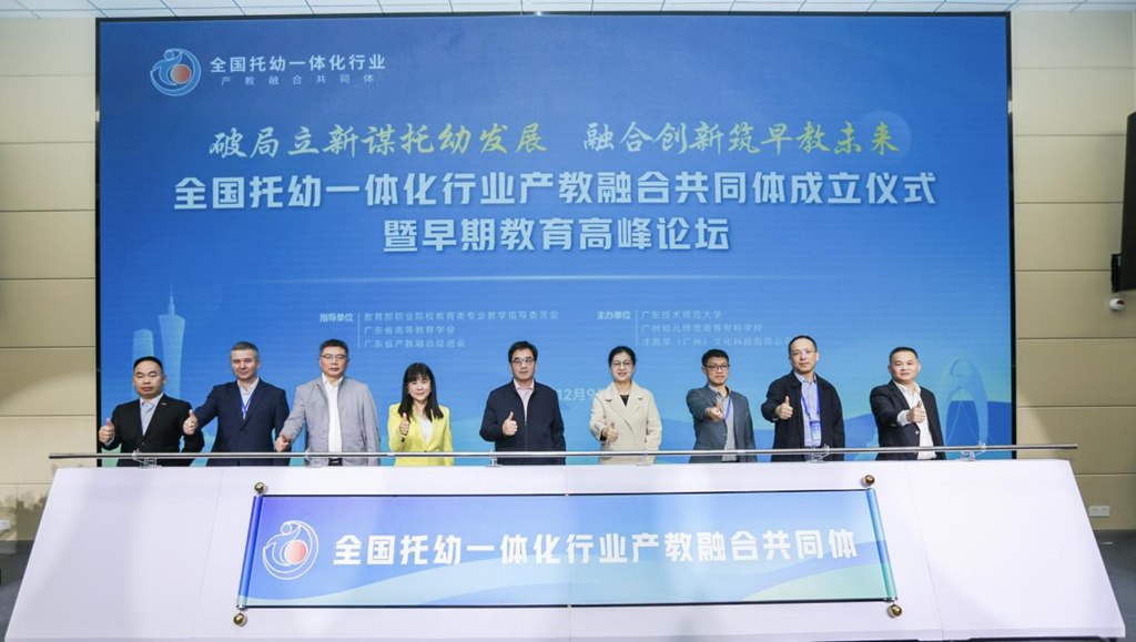 2023年12月9日,全国托幼一体化行业产教融合共同体成立仪式暨早期教育高峰论坛在广州幼儿师范高等专科公司举行,