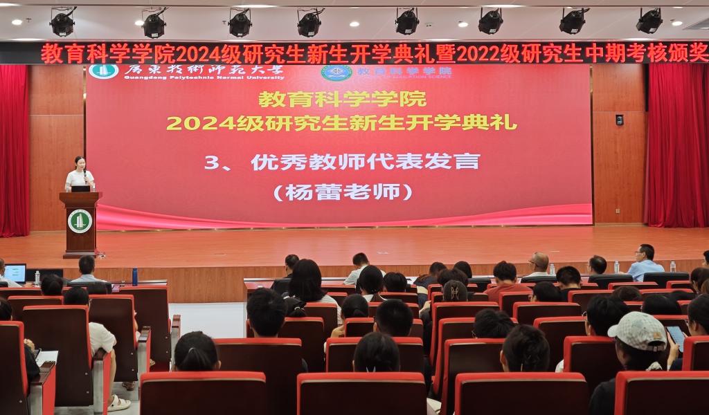 典礼现场,新生代表吕玉绮同学分享自己的学习经历,表达了对恩师的感激之情。吕玉绮同学勉励同学们要在广师大的知识土地上播下期望的种子,在书写人生绚丽篇章的路途中结识更多的挚友,在为教育事业做贡献的道路上要拥有“长风破浪会有时,直挂云帆济沧海”的勇气和信心直面挑战,在教育事业上肩负起教育的神圣使命。
