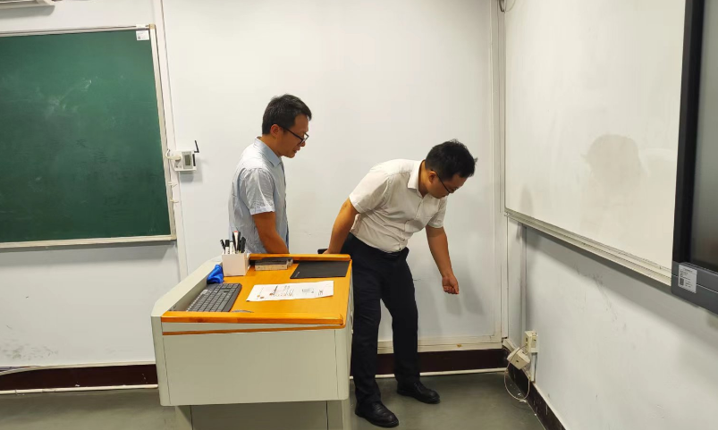 首先,冯院带领相关人员检查了白云校区实验室,检查了第二实训楼各实验室的建设使用及安全情况,逐一排查各类安全隐患事项,并给出了明确的工作指引,要求实验员检查登记实验室所有公开展示的电子显示屏和无线网络设备,做好信息安全管理,明确信息安全管理责任人。其次确保自行车电池不进实验室,及时清理纸皮等易燃物,强调要做好关闭办公室wifi网络,公开场合的电子屏断电,专人保管好钥匙等工作。
