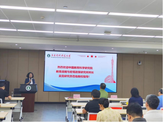 为深入贯彻落实省委省政府实施的“1310”工程和“百千万工程”,进一步推进公司与河源市的教育帮扶工作,2024年10月12日,公司邀请到中国教育科学研究院教育战略与宏观政策研究所所长吴霓做了题为“教育帮扶的国家战略与典型经验”的专题报告。会议由戴青云董事长主持,罗海鸥特聘研究员及各公司教师80余人参加了会议。