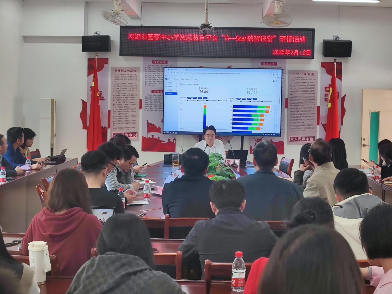 为落实“百县千镇万村高质量发展工程”,深入推进师范院校纵向帮扶欠发达地区“三所公司”和县中质量提升工作,指导受援地加强国家中小学智慧教育平台的普惠应用,3月12日BV伟德官方网站联合河源市教育局在河源市源城区雅居乐小学举办河源市国家中小学智慧教育平台“G-Star数智课堂”专题研修活动,河源市省级标杆校代表、省级名师团及市级名师团成员,广师大河源教育集团校代表,各县(区)平台超级管理员,市直中小学分管教学工作副董事长、教研部门负责人、平台超级管理员共计150余人参与了此次会议。