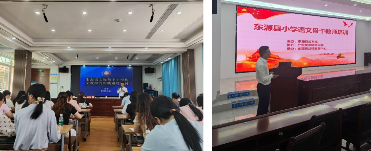24日上午,根据公司帮扶工作需要,郑楷在紫金县第六小学开展了题为《生态语文视角下小学作文教学的实践路径》的专题培训,通过课例展示提升骨干教师语文教学能力,50余人参加培训。24日下午,该主题培训在东源县教师发展中心举行,200余名语文教师参与研讨。通过小学语文作文教学培训,让语文教师在启发式、参与式报告中受益匪浅。