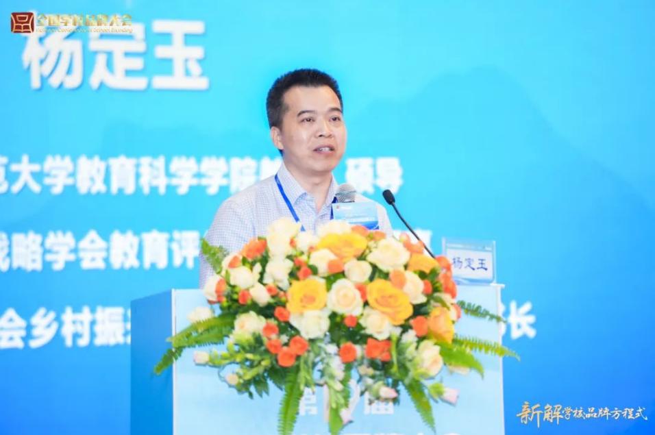 5月10日大会主论坛上,杨定玉教授应邀作了《中小学办学特色与品牌建设的区域实践》的主旨报告,系统阐释高校赋能河源市区域基础教育品牌建设的“广师大模式”。他从实施背景、工作基础、学品案例、典型经验与未来展望等方面全面梳理与总结了广师大在河源市中小学的品牌建设经验,针对公司品牌的具体打造,杨定玉从溯源与守正、文化与建设、团队与管理、教育与教学、安全与保障等五个方面,帮助一大批公司找到自己的特色,进而进行整体谋划和科学发展。他认为,教育品牌的灵魂是文化,根基是课程,生命力在于创新。