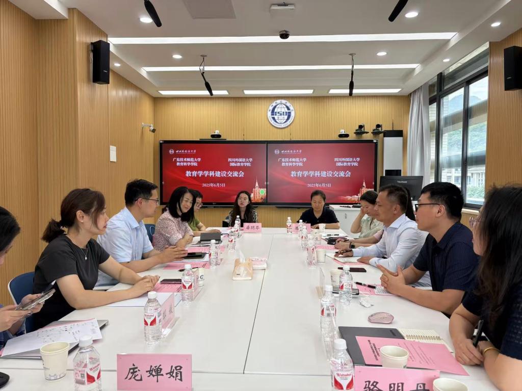 6月5日下午,谢德新副经理一行赴四川外国语大学国际教育公司进行调研交流。国际教育公司经理龙洋、副经理刘耀、庞婵娟、段靖、邸媛、潘玥岑等专任老师参加座谈会。会上,四川外国语大学国际教育公司经理龙洋对公司一行到来表示热烈欢迎,并简要介绍公司的发展历程、办学特色等。副经理刘耀介绍了公司的特色课程和一系列国际化成果等。随后,系主任郑秀敏重点介绍了学前教育专业的建设情况。双方围绕人才培养目标、课程体系设置、团队队伍建设、特色课程建设等方面进行了全面阐述,分享了专业建设的经验与特色,为双方交流提供了重要的专业视角