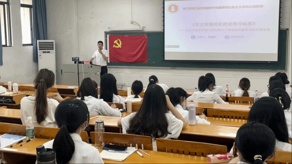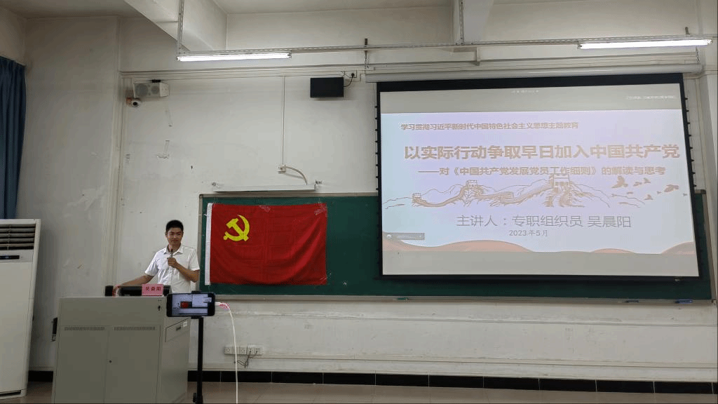 紧接着,吴晨阳老师以党支部建设为主线,讲解了党支部规范建设的相关问题和支部委员会的职责。最后,他号召全体学员将个人前途与国家命运紧密联系在一起,踔厉奋发,勇毅前行,树牢“四个意识”,坚定“四个自信”,自觉做到“两个维护”,严于律己,以青春之力、务实之风、奋进之心绘就时代篇章。