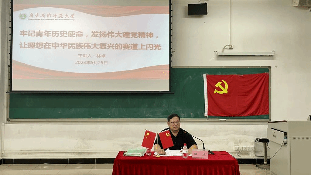 林卓以《牢记青年历史使命,发扬伟大建党精神,让理想在中华民族伟大复兴的赛道上闪光》为主题,结合党的发展历程与自身成长经历,向同学们分享自己的感悟,并从以下三点为同学们重点论述:一是伟大的民族、伟大事业,需要一代又一代有坚定理想信念的青年接续奋斗;二是在实现中华民族伟大复兴的实践中逐步树立起坚定的共产主义崇高理想、马克思主义的信仰、中国特色社会主义的信念;三是广大青年学子在高校的学习、工作和生活中要做习近平新时代中国特色社会主义思想的坚定信仰者和忠实实践者。