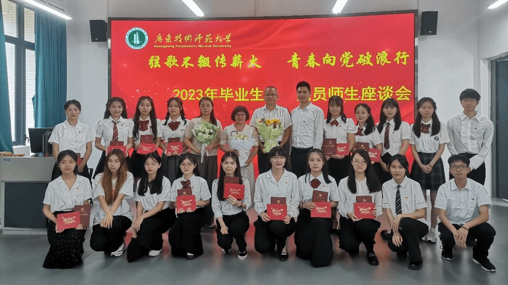 为做好2023届毕业生党员教育和党组织关系转接工作,激发毕业生党员爱校荣校之情,进一步增强毕业生党员的集体荣誉感和社会责任感。教育科学公司党委于6月10日下午在白云校区第二实训楼315课室举办“弦歌不辍传薪火,青春向党破浪行”2023年毕业生党员座谈会暨主题党日活动。公司党委书记张旭日、公司党委副书记吴水爱、教务员吴嘉怡、各员工党支部员工副书记、全体毕业生党员参加此次会议。会议由专职组织员吴晨阳老师主持。